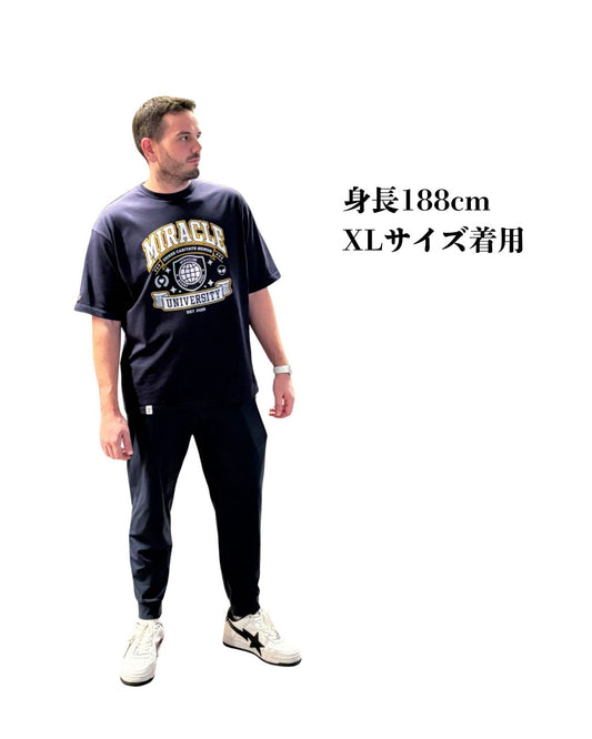 MIRACLE UNIVERSITY ロゴプリントTシャツ (ロング丈)(メンズ)