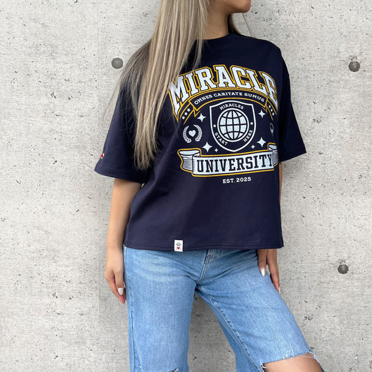 MIRACLE UNIVERSITY ロゴプリントTシャツ (ショート丈)(レディース)
